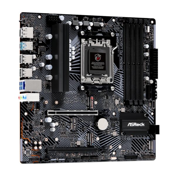 The ASRock B650M PG Lightning Micro ATX Motherboard is engineered to unlock the full potential of AMD’s Ryzen 7000, 8000, and 9000 series processors. This AM5 Motherboard is perfect for gamers and PC enthusiasts looking to build a high-performance system without compromising on space. Featuring the AMD B650 chipset, it delivers exceptional speed, stability, and future-proof compatibility. The B650M PG Lightning offers incredible value, making it a top choice for your next build.
