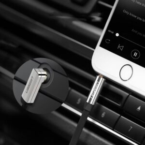 The UGREEN right-angled car aux cable solves connection problems in confined areas. Its innovative design allows easy connections behind TVs or in your car, eliminating bending and straining. Enjoy a hassle-free audio experience in any tight space with this thoughtfully designed car aux cable.