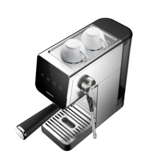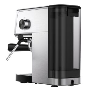 - Save space with the compact design, fitting neatly into any corner. This is a great small espresso machine for any space.